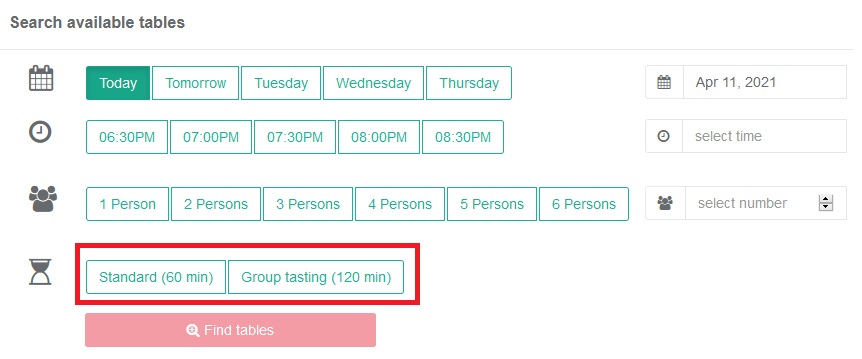 This is how the setup looks like in the SeatOn Web application, when an employee makes a reservation, and chooses event duration by selecting meal type: